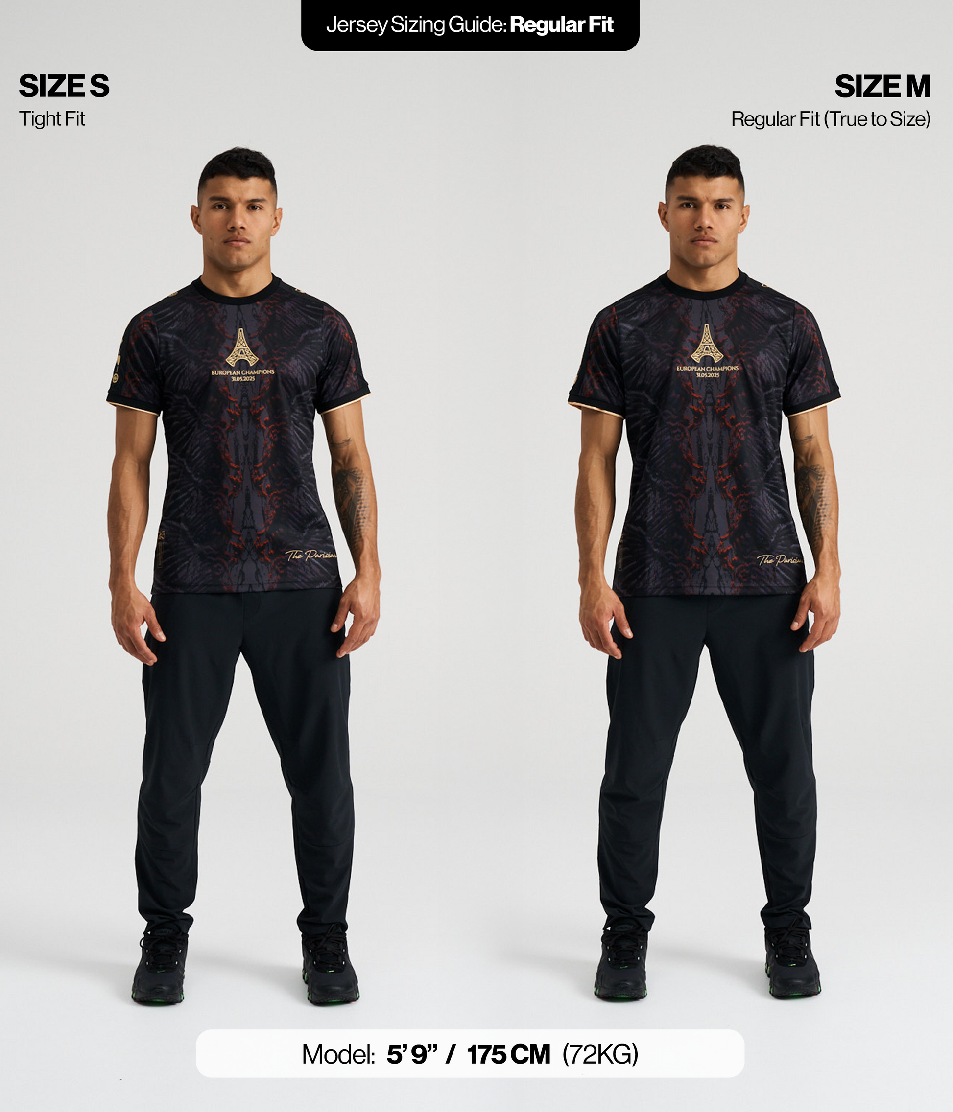 - Model 2 is 5'9 / 175 cm (72kg) wearing Size L (for a Regular Fit).